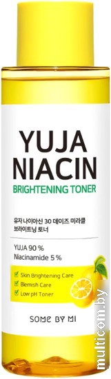 | Информация | Тоник с юдзу для сияния кожи Some By Mi Yuja Niacin Brightening Toner восстанавливает оптимальный pH после умывания, регулирует выработку меланина и способствует осветлению нежелательной пигментации, веснушек, пост-акне. Защищает кожу от фотостарения, предотвращает преждевременное появление морщин. Увлажняет кожу, смягчает и готовит к последующему нанесению уходовых средств. Тоник имеет жидкую текстуру, удобней всего его распределять при помощи ватного диска. Не оставляет на коже липкости. |
