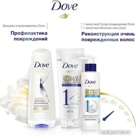 | Информация | Бальзам-ополаскиватель Dove с технологией Keratin Repair работает одновременно в 2 направлениях: достижение мгновенного результата и более долгосрочного эффекта. |