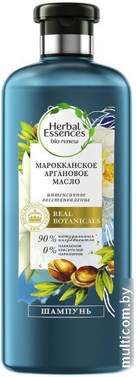| Информация | Обзор Herbal Essences верит в красоту, вдохновленную самой природой. Создано в партнерстве с Королевским Ботаническим Садом Кью — всемирно признанным авторитетом в области ботаники, — что удостоверяет качество растительных ингредиентов. Шампунь Herbal Essences Марокканское аргановое масло на 90 % состоит из натуральных ингредиентов* и включает в себя активный антиоксидант, который способствует бережному очищению и защите ваших волос. Шампунь с аргановым маслом из Марокко помогает вернуть волосам былую гладкость. Шампунь содержит 0 % парабенов, красителей, парафинов. Сбалансированный уровень рН, подходит для окрашенных волос. *очищенная вода и натуральные ингредиенты, прошедшие ограниченную обработку. |