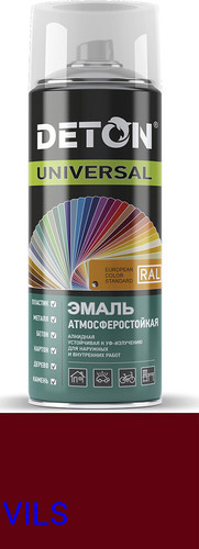 | Информация | алкидная эмаль DETON UNIVERSAL (Рубин RAL 3005) применяется для: металла, древесины, камня и тд. Цвета соответствуют европейскому стандарту RAL. Требует предварительной грунтовки поверхности. Атмосферостойкость краски защищает слой от атмосферных воздействий.'Универсальная алкидная эмаль DETON UNIVERSAL (Рубин RAL 3005) применяется для: металла, древесины, камня и тд. Цвета соответствуют европейскому стандарту RAL. Требует предварительной грунтовки поверхности. Атмосферостойкость краски защищает слой от атмосферных воздействий. |