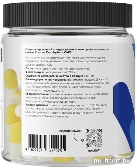 | Состав | Моногидрат креатина, капсула (желатин). |