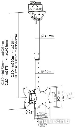 Расстояние от стены (потолка) | 1 060 — 1 560 мм |