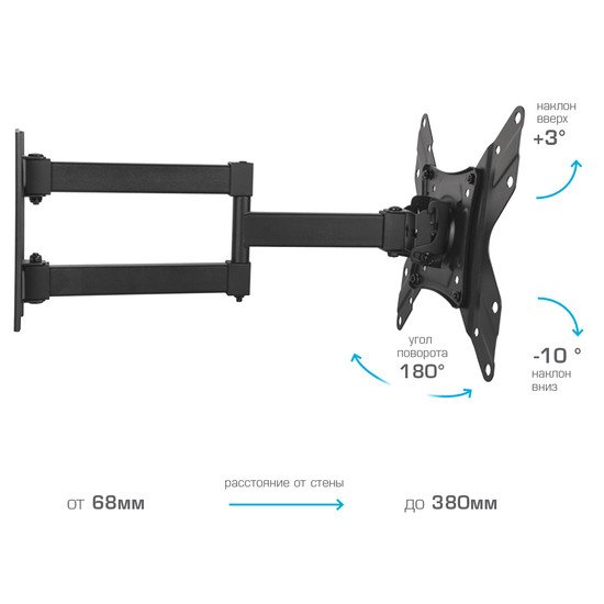 Информация | ? Кронштейн Arm Media LCD-205 BLACK BLACK подходит для экранов размером 14"-42" и весом до 25 кг. ? Простая конструкция идеально подходит для самостоятельного монтажа. ? Наклонно-поворотная регулировка позволяет наклонять экран вверх и вниз на +3 -10°, поворачивать влево и вправо на 180°, и выдвигать на 68-380 мм. |