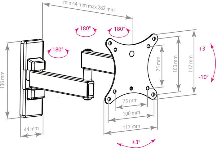 Расстояние от стены (потолка) | 44 — 282 мм |