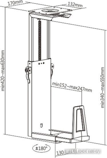 | Информация | Универсальное крепление для нестандартных игровых системных блоков весом до 15 кг и размером до 55х24,7 см. Главные особенности держателя: бесступенчатая регулировка высоты; регулировка глубины; вращение на 360°. |