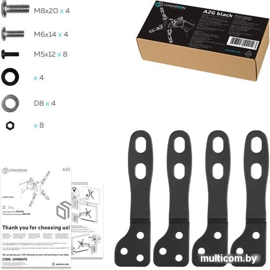 Информация | Универсальный адаптер ONKRON A2G предназначен для установки мониторов с размерами монтажных отверстий 100х200, 200х100, 200х200 на любой кронштейн ONKRON с VESA-панелью, обладающей монтажными отверстиями 75х75 и 100х100 мм. Адаптер изготовлен из высококачественной стали, что позволяет крепко зафиксировать монитор на кронштейне. Адаптер поставляется с комплектов винтов для крепления адаптера к кронштейну, а также болты для монитора, которые могут пригодиться при установке нового монитора. |