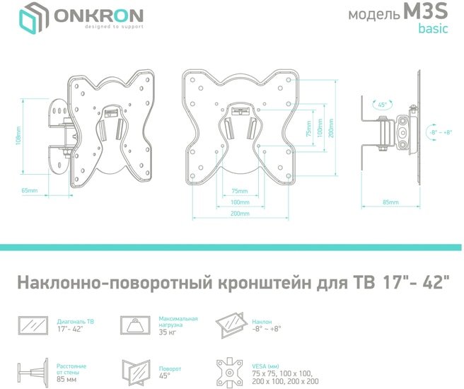Совместимость с креплением VESA | Да 75x75, 100x100, 200x100, 200x200 |