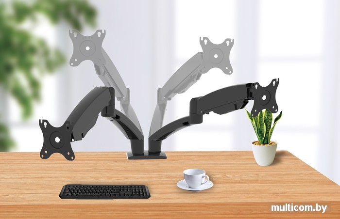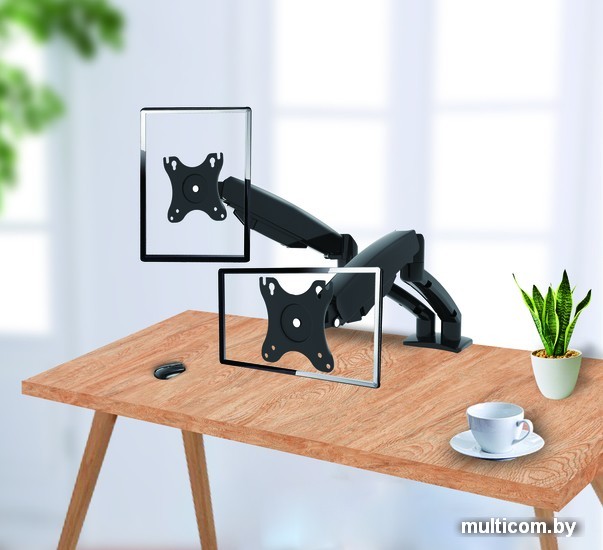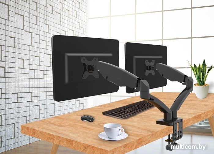 | Функциональные особенности | поворотный, с регулировкой высоты, кабель-канал, струбцинное крепление, для 2 мониторов |