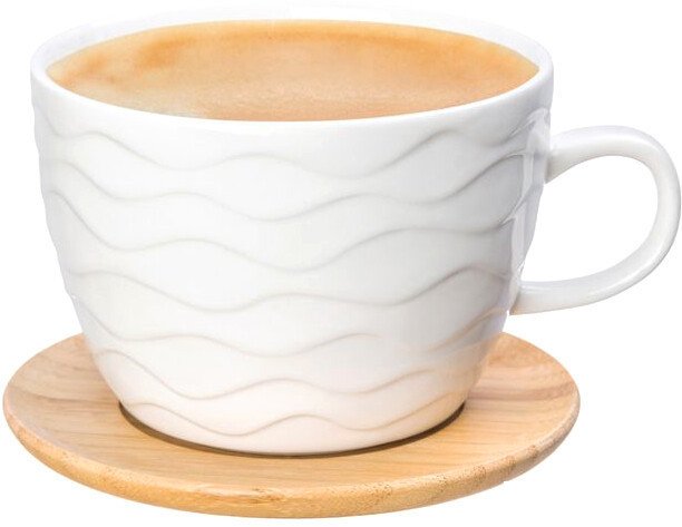 | Информация | Чашка для капучино и латте объемом 500 мл с деревянной крышкой-подставкой выполнена из высококачественного фарфора и натурального бамбука. Теплое цветовое решение, изящный рельефный рисунок на фарфоре и удобство использования делают эту чашку желанным подарком любой хозяйке. У чашки большой объем, что позволил приготовить нужное количество напитка. |