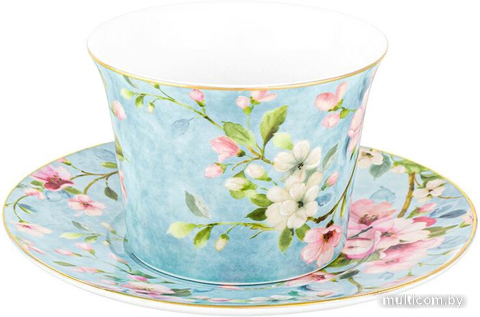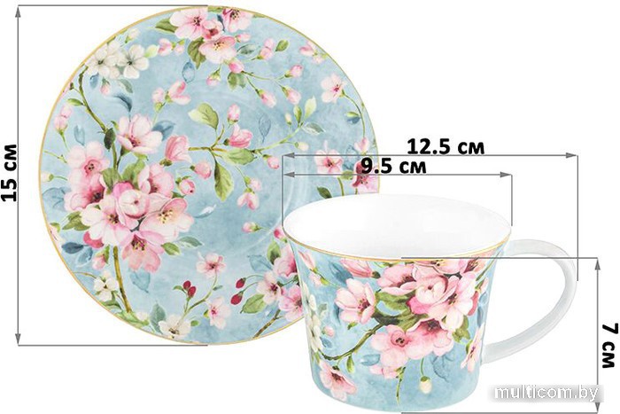 | Информация | Чайная пара серии «Яблоневый цвет» состоит из чашки объемом 270 мл и блюдца диаметром 15 см. Чайная пара поможет провести множество приятных чаепитий. Чашка и блюдце украшены розовыми цветами яблони на голубом фоне и обрамлены золотым окаймлением. Выполнены из высококачественного фарфора New Bone China. Это фарфор нового поколения, не уступающий по качеству традиционному костяному фарфору, но при этом гораздо более экологичный в производстве. Чашка имеет изящную форму, а ее ручкой удобно пользоваться. Посуда с золотым окаймлением не подходит для использования в микроволновой печи и посудомоечной машине. |