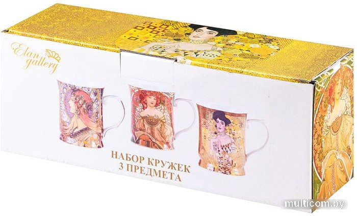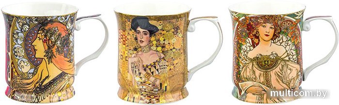 | Информация | Набор из трех кружек объемом 400 мл каждая с изображениями шедевров мировой живописи станет прекрасным подарком любой хозяйке. На кружках изображены работы кисти Альфонса Мухи и Густава Климта. Набор выполнен из высококачественного костяного фарфора New Bone China. Он изготавливается с использованием современных технологий и не уступает традиционному костяному фарфору в прозрачности, белизне и прочности, но при этом гораздо экологичнее в производстве. Кружки вместительные, с изящной формой и удобной ручкой. Не использовать в микроволновой печи и посудомоечной машине. |