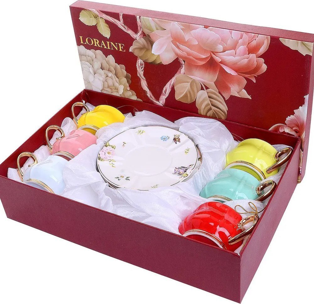 | Информация | - Набор для чая/кофе Loraine Премиум 29129 подойдет как для повседневного использования, так и праздничной сервировки стола. - Набор состоит из 12 предметов: 6 чашек и 6 блюдец, упакованных в прямоугольную подарочную коробку. - Чашки с блюдцами изготовлены из высококачественного костяного фарфора, устойчивого к появлению царапин. - Изделия декорированы нежным рисунком с изображением цветов и украшены тонкой золотой каймой. - Чашки имеют удобные, изящные ручки. - Стильный дизайн чайной пары придется по вкусу и ценителям классики, и тем, кто предпочитает утонченность и элегантность. - Кружки подходят для горячих и холодных напитков, для чая и кофе. - Набор упакован в стильную подарочную коробку, оформленную изнутри белой атласной тканью. - Каждый предмет надежно зафиксирован внутри коробки благодаря специальным выемкам. - Можно использовать посудомоечной машине. - Набор не только великолепный чайный сервиз, но и настоящий подарок, который непременно порадует родных и близких. |