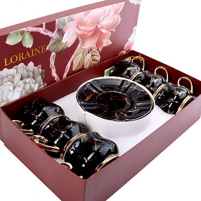 | Информация | - Набор для чая/кофе Loraine Премиум 31137 - идеальное решение как для ежедневного использования, так и для особенных случаев. Включает в себя 6 чашек и 6 блюдец из высококачественного костяного фарфора, упакованных в стильную подарочную коробку. Чашки устойчивы к царапинам и имеют удобные изящные ручки. Подходят для горячих и холодных напитков, идеальны для чая и кофе. Можно мыть в посудомоечной машине. Поставляется в элегантной упаковке, делая его отличным подарком для близких. |