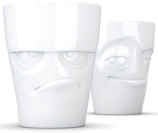 | Информация | Забавная пара, которая неожиданно нашла общий язык несмотря на все различия. Одна кружка изображает милого ворчуна, которого так и хочется развеселить. А другая представляет собой озорного проказника, который никогда не упустит случай весело пошутить. Дизайнеры Tassen удивительно точно воплотили в фарфоре настоящие человеческие эмоции, которые никогда не надоест рассматривать. Кружки не имеют ручек, поэтому использовать их можно не только на кухне. Отлично подходит как для чая, внушительной порции кофе или горячего шоколада, так и в декоративных целях — например, в качестве офисной подставки для канцелярии. |