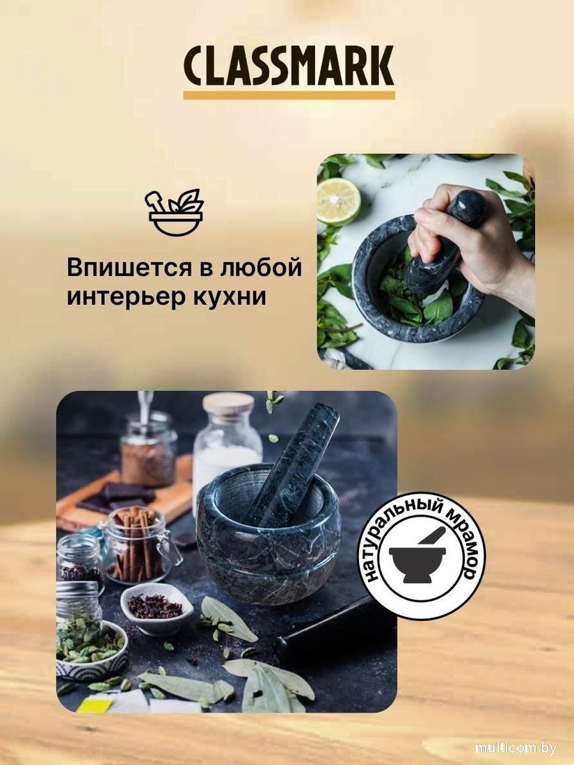 | Информация | - Ступка с пестиком Classmark 22011301 станет вашим незаменимым помощником на кухне для приготовления свежих специй и приправ. Изготовленная из натурального камня, она идеально подходит для измельчения трав, а также для ручного измельчения таблеток. - Эта каменная ступа отлично справляется с задачей приготовления соусов, позволяя сохранить насыщенный аромат и вкус ваших блюд. Уникальный природный рисунок каждой ступки делает её не только функциональной, но и стильным элементом вашей кухни. - Используйте ступку для создания натуральных пряностей из соли, перца, чеснока, орехов и других ингредиентов. Такой ручной подход к приготовлению специй гарантирует вам уверенность в их качестве и позволяет насладиться истинным вкусом любимых блюд. - Специи из магазина часто содержат добавки и теряют свои ценные качества, в то время как мраморная ступка обеспечивает вам возможность готовить только из натуральных ингредиентов. - Ступка с пестиком станет отличным подарком для мамы, подруги или любой хозяйки, которая любит готовить. Отличие этой ручной механической ступки от электрических измельчителей заключается в том, что процесс приготовления приправ — это настоящее искусство, которое стоит попробовать. |