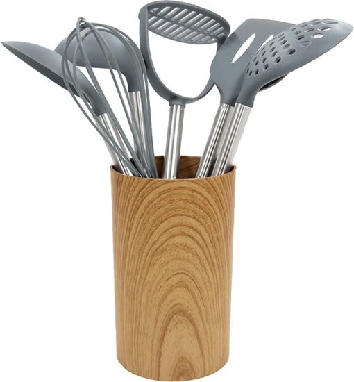 Состав набора | венчик, картофелемялка, ложка, лопатка, половник, подставка, соусник |
