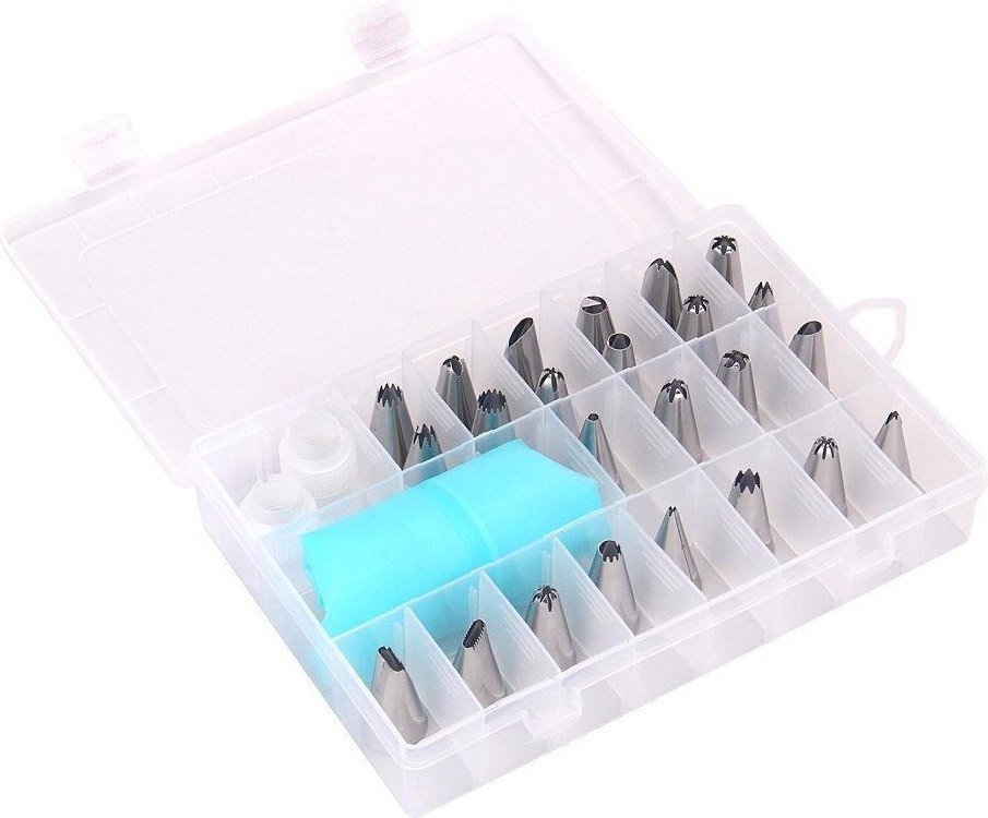 | Информация | Набор кондитерских насадок состоит из 24 насадок и контейнера для хранения. Кондитерский набор предназначен для крема, шоколада, теста, зефира, для декорирования тортов, капкейков и пирожных, разнообразных десертов. Набор кондитерских насадок – это отличный подарок для настоящих гурманов и любителей сладкого. Подарите его своим близким или друзьям, и они будут в восторге от возможности создавать уникальные десерты. |