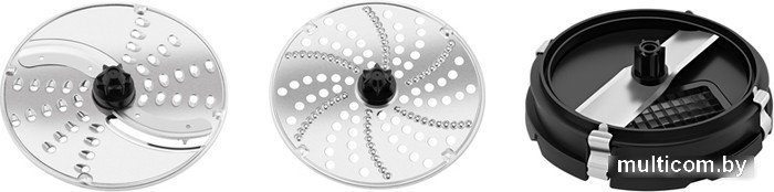 Полная комплектация | Чаша для измельчения (объём 2,0 л) Нож для измельчения Мерный стакан для смешивания (объём 0,6 л) Насадка венчик Насадка миксер Насадка блендер с 4-х лопастным ножом Насадка для нарезки кубиками Насадка для приготовления пюре Диск-тёрка для драников Двусторонний диск для терки и нарезки/шинковки Толкатель |