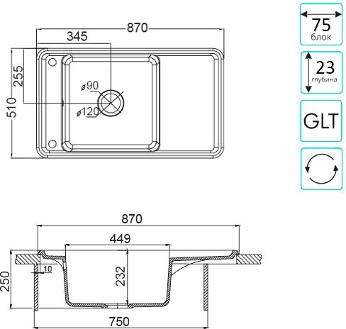 | Комплектация | Мойка - 1 штСифон - 1 штСлив-перелив - 1 штИнструкция - 1 шт |