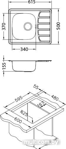 | Ширина мойки | 61.5 см |