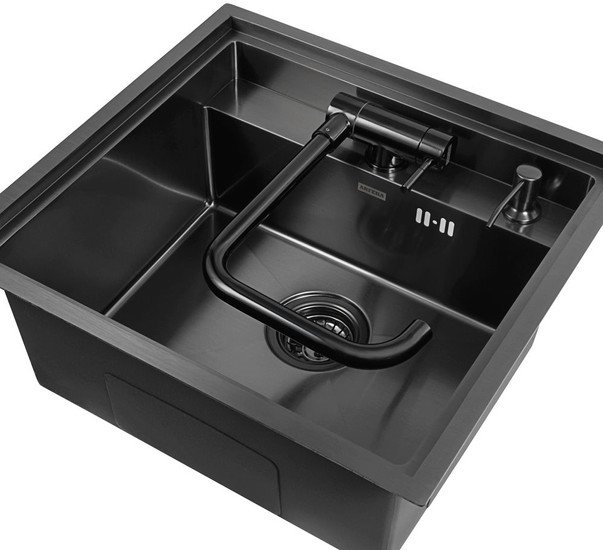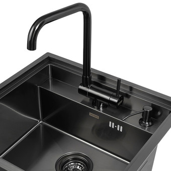 | Комплектация | Кухонная мойка, смеситель, дозатор для жидкого мыла, сливная арматура, крышка для мойки |