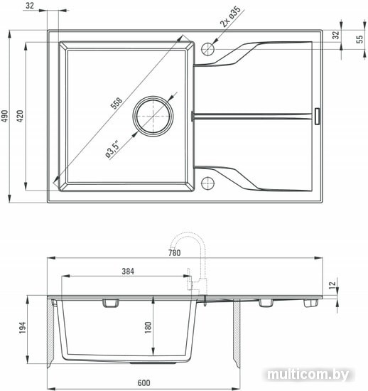 | Ширина мойки | 78 см |