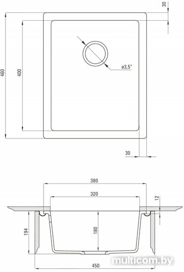 | Диаметр сливного отверстия | 3.5" |