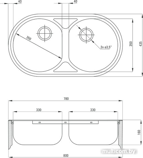 | Диаметр сливного отверстия | 3.5" |