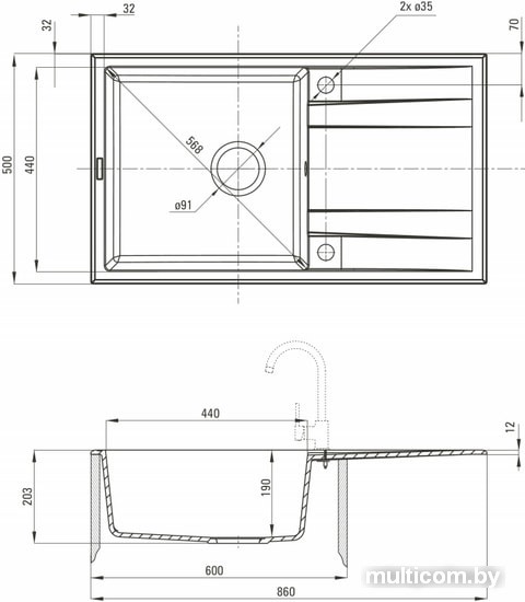 | Ширина мойки | 86 см |