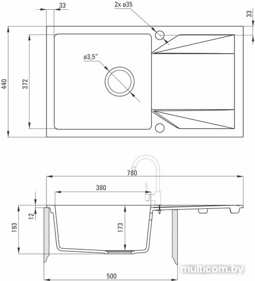 | Ширина мойки | 78 см |