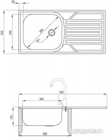| Диаметр сливного отверстия | 2.0" |