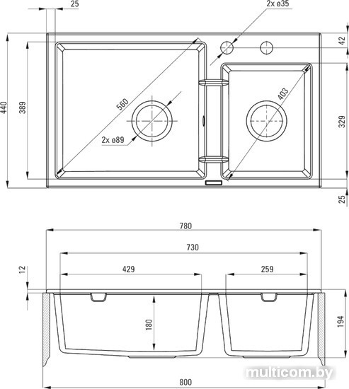 | Ширина мойки | 78 см |
