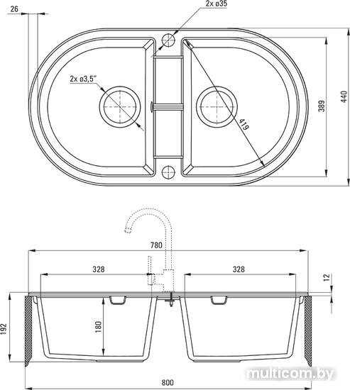 | Ширина мойки | 78 см |