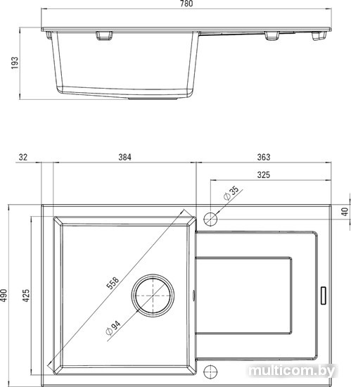 | Ширина мойки | 78 см |
