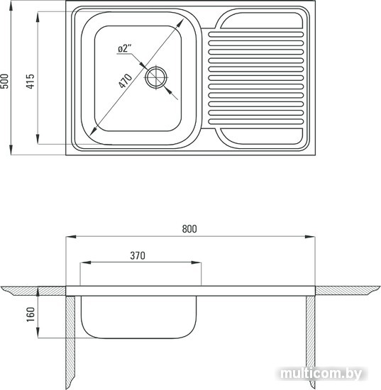 | Диаметр сливного отверстия | 2.0" |