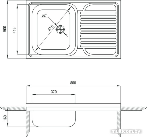 | Диаметр сливного отверстия | 2.0" |