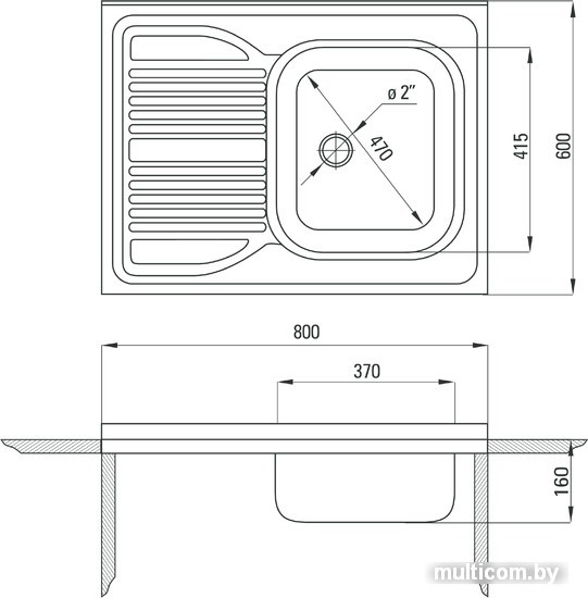 | Диаметр сливного отверстия | 2.0" |