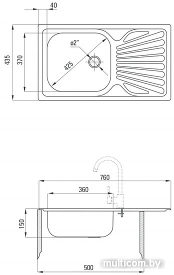 | Глубина мойки | 43.5 см |