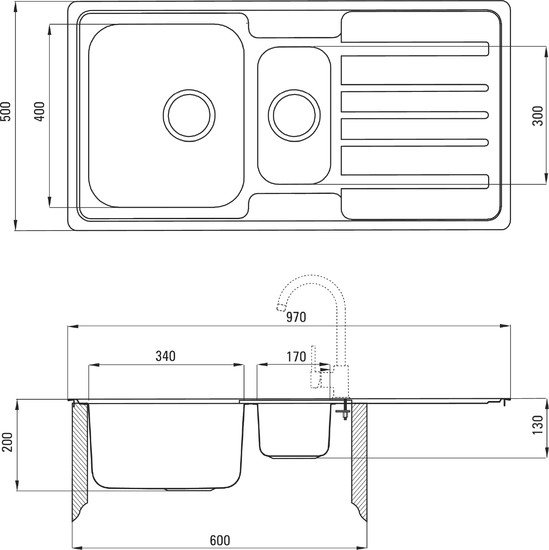 | Ширина мойки | 97 см |