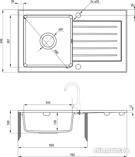 | Ширина мойки | 76 см |