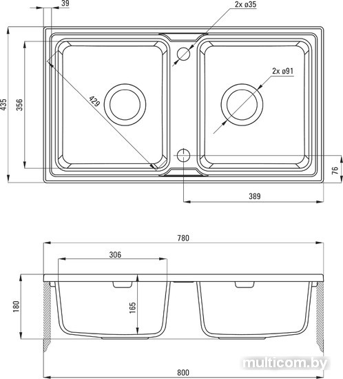| Ширина мойки | 78 см |