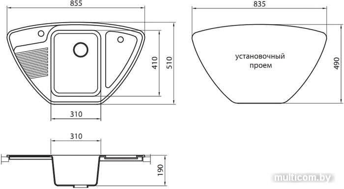| Информация | Мойка данной модели органично смотрится не только в углу кухни, но и при стандартном размещении. Удобное расположение, основной, подготовительной чаши и крыла позволяет обеспечить плавность течения рабочего процесса. |
