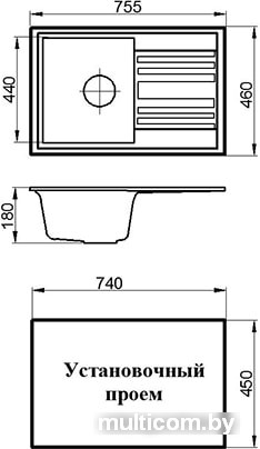 | Ширина мойки | 75.5 см |