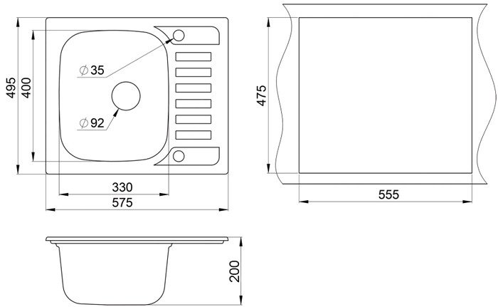 | Ширина мойки | 57.5 см |