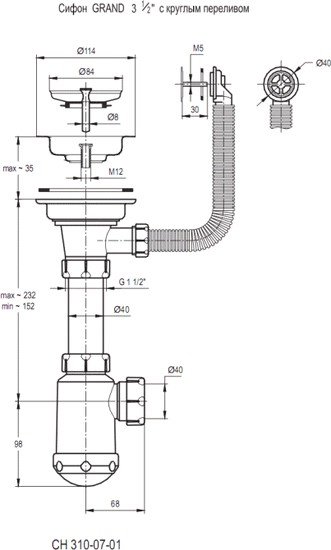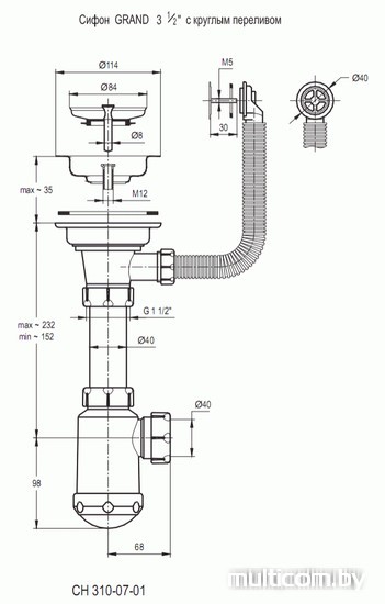 | Диаметр сливного отверстия | 3.5" |