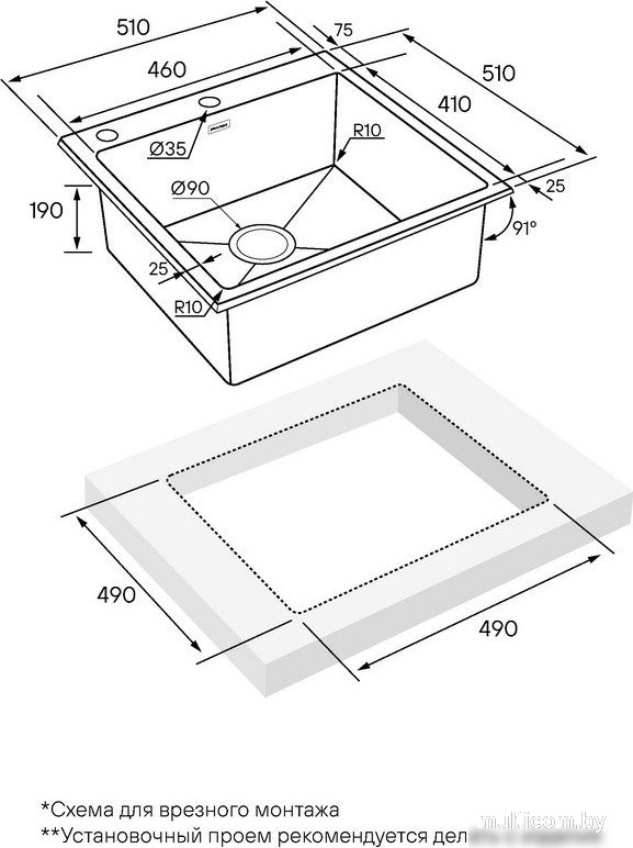 | Способ установки | врезная на столешницу |
