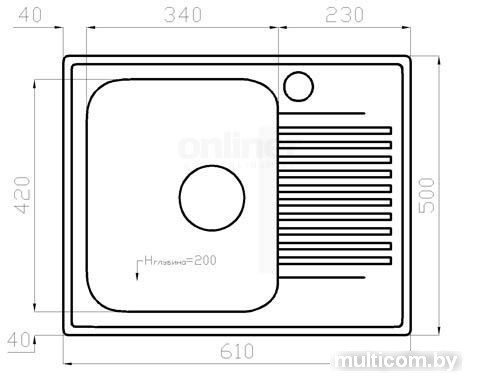 | Ширина мойки | 61 см |