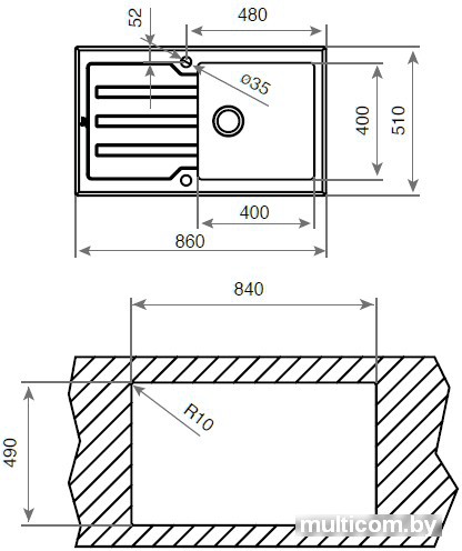 | Способ установки | врезная на столешницу |