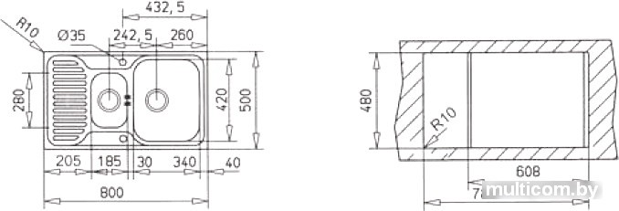 | Ширина мойки | 80 см |