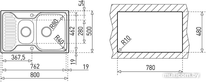 | Ширина мойки | 80 см |